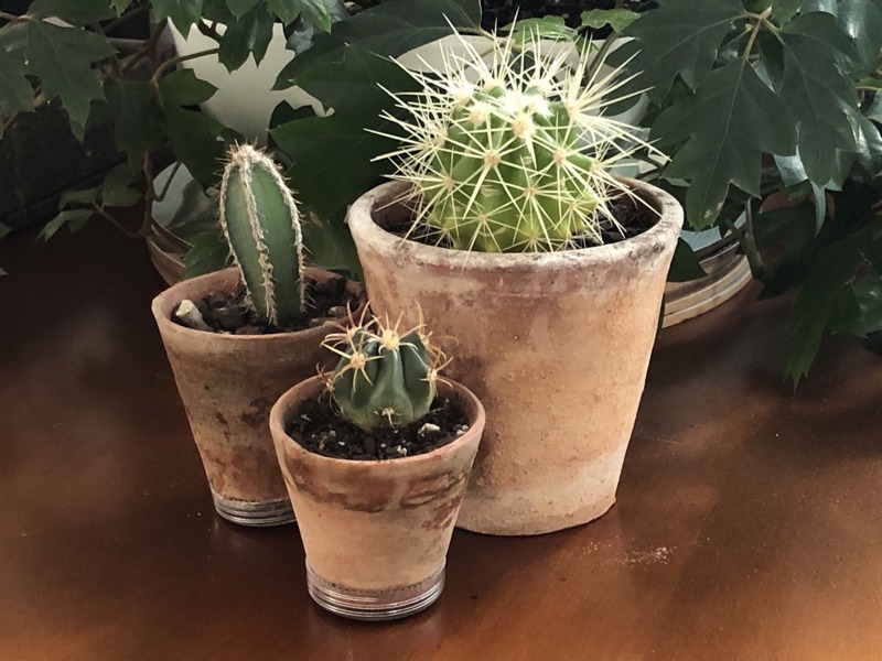 When handling cacti wear gloves and also use a newspaper folded into a loop to grip and lift the plant.