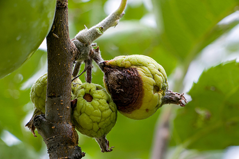 Fruit that is infected through buds or flowers will turn brown and soft. Fruit can also be infected through the skin, which forms dark brown patches that rot the fruit.