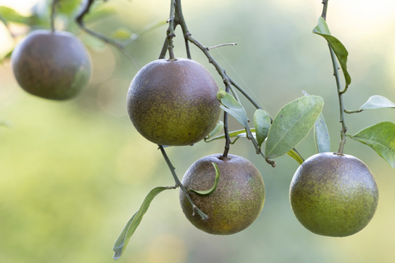 During warm, humid summer and autumn conditions, huge populations of citrus rust mites can develop rapidly. These microscopic mites pierce the outer surface of green, immature citrus fruit to suck out fluid nutrients, which causes permanent damage to the rind. As the fruit develops, the scarring becomes more obvious and unsightly.