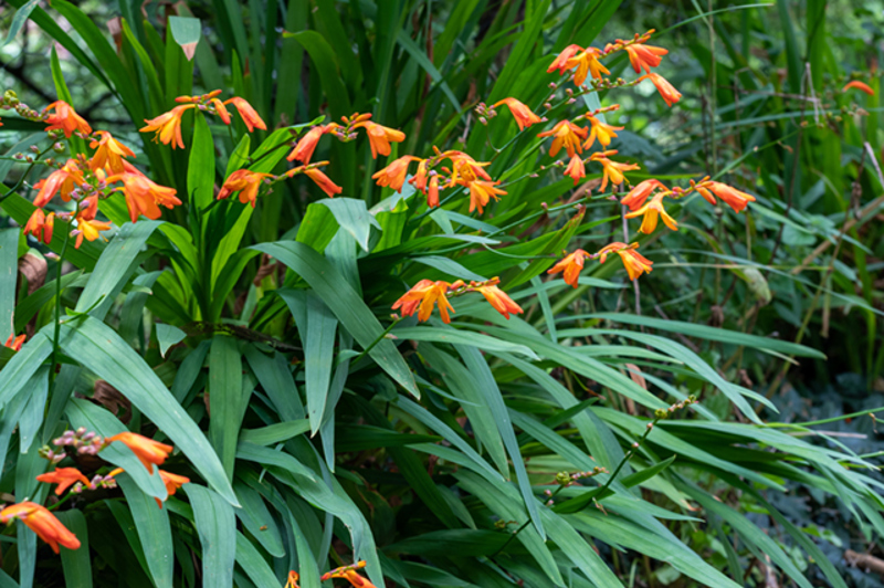 Montbretia doesn’t produce seed, it spreads by sending out creeping rhizomes, or sprouts from ‘cormils’ (small bud-like corms) that form on the flowers. It loves to be dug up or disturbed as it can regrow from tiny pieces.